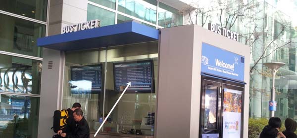 航站樓1 層(到達層)的內部(4, 9號出口旁邊),外部(4, 6, 7, 8, 11, 13號出口旁邊以及9C)的口旁邊)的大巴售票處可以詢問和購買豪華機場巴士/座席巴士的乘車票