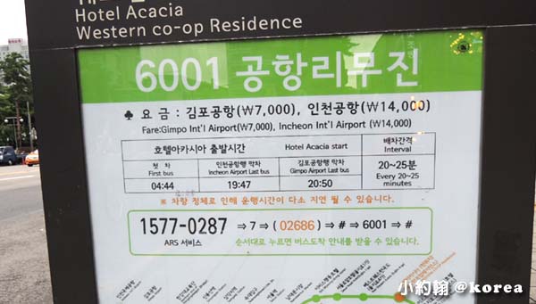 Western CO-OP Residence門口就是6001機場巴士站牌,費用是15000韓元一趟,往返仁川機場,上車付現給司機就可以啦!另外可印折價券省1千韓元,見文未!