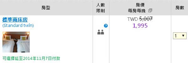Western CO-OP Residence 西方高爺公寓飯店的雙人房約3500台幣!